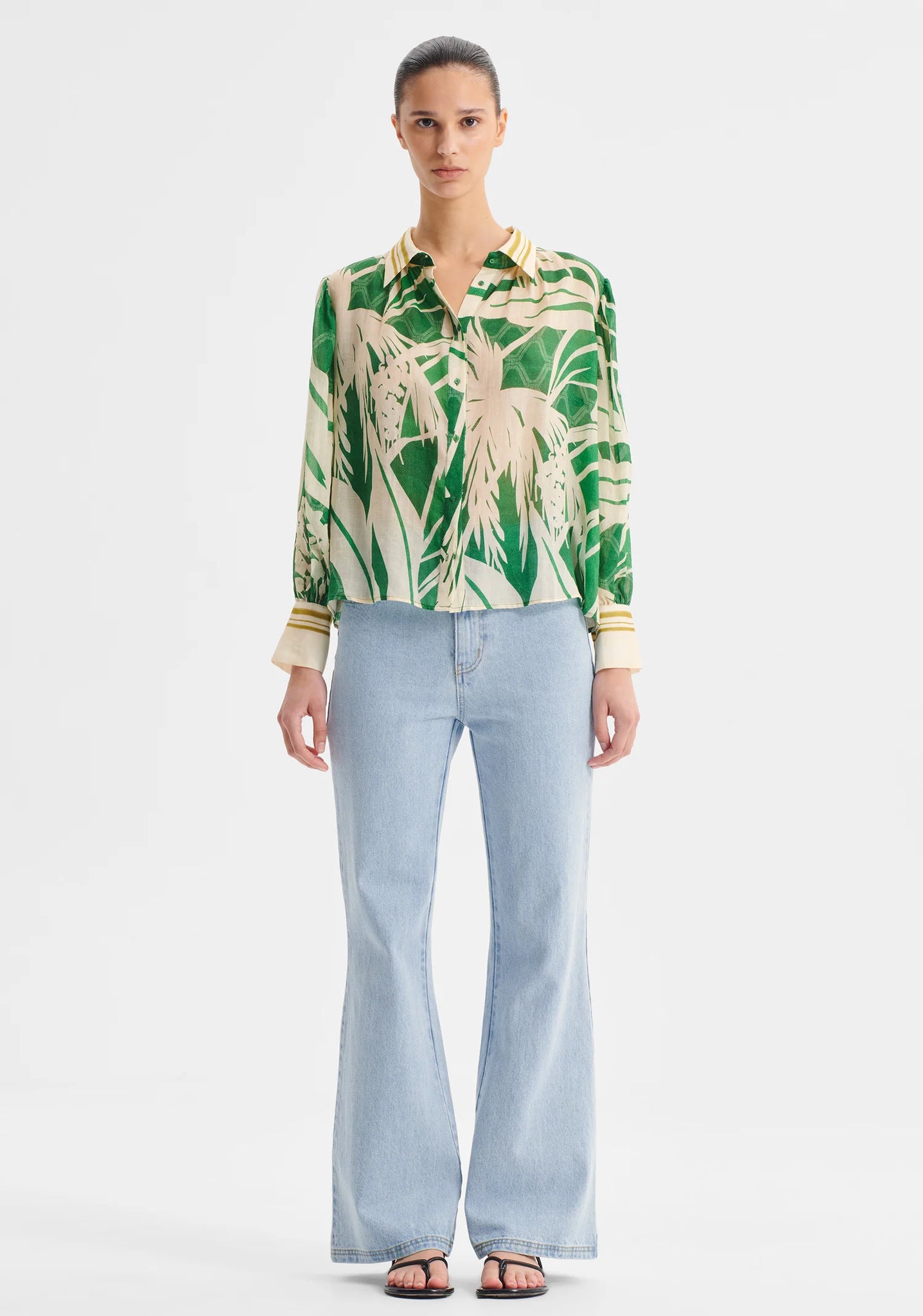 Lightweight and effortlessly elegant, the Sorrento Blouse is crafted from a breathable Ramie Lyocell blend. Featuring a traditional collar and full-length billow sleeves, it’s elevated by a distinctive border print at the collar and cuffs-adding a refined, artisanal touch to this timeless silhouette.