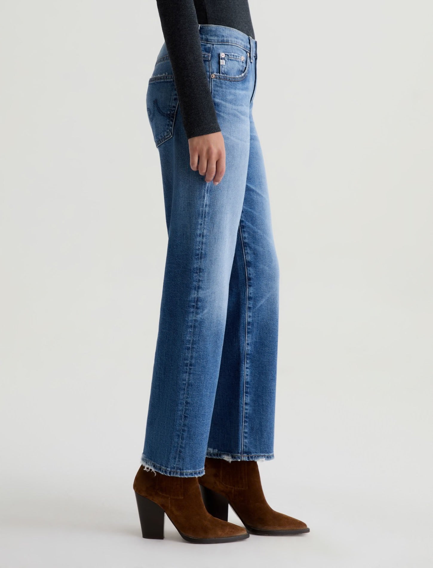 Brinley Crop is crafted from Daytripper Stretch Denim from the renowned Kaihara Mill in Japan. A versatile, polished jean with a mid-rise waist and cropped straight leg. Designed in 17 Years Mystery, our medium blue wash, finished to emulate 17 years of AG-ed™ wear through highs and lows, whiskering, fading, and distressed trim.