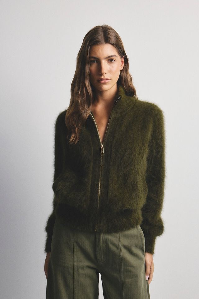 Our Felix Zip Cardigan is not just a stylish layering piece but also an everyday essential. With its luxurious material and gold hardware, it's the perfect addition to any outfit.