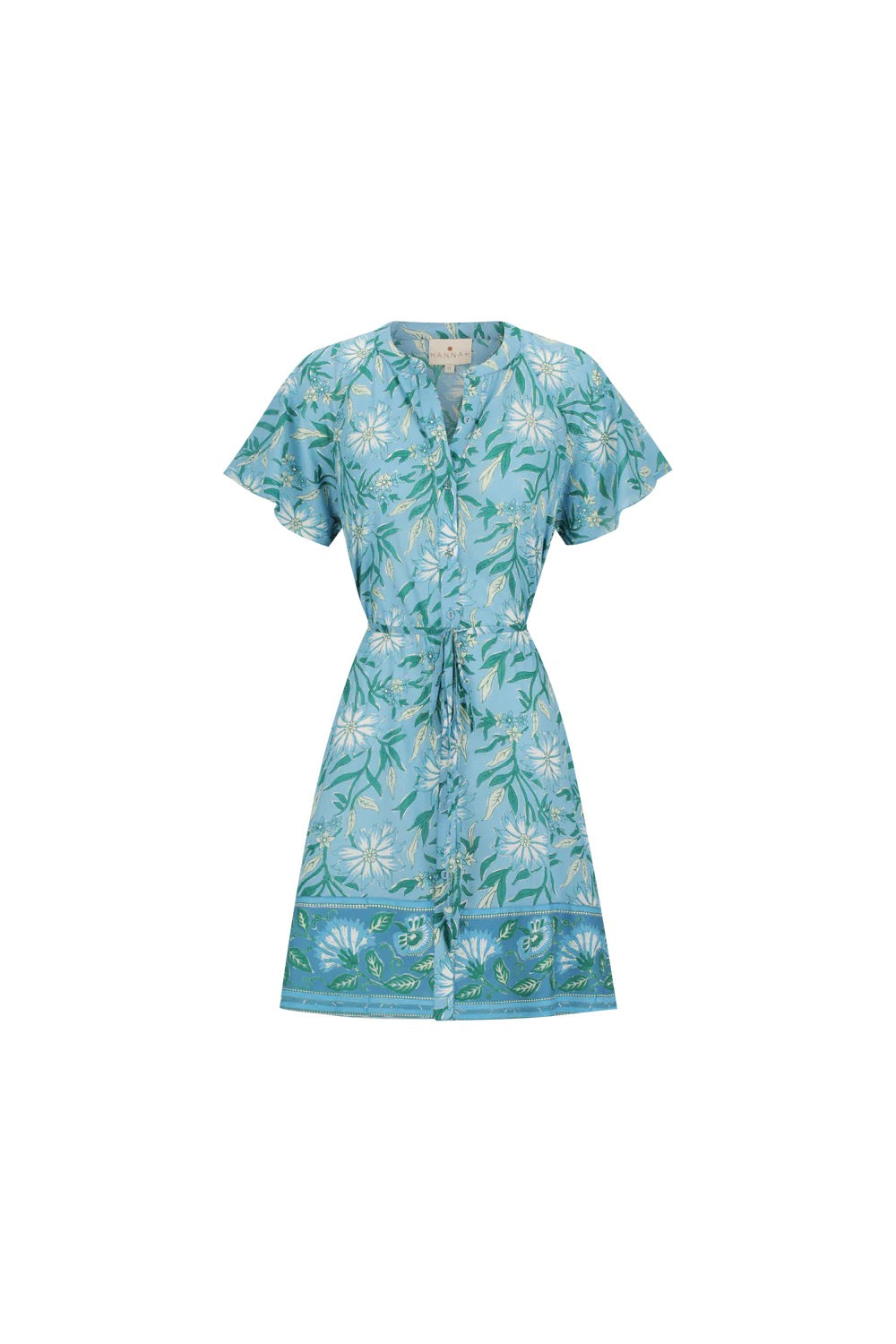 - Trapeze silhouette draw into the waist by back waist drawstring with separate waist tie, finished with wooden bead