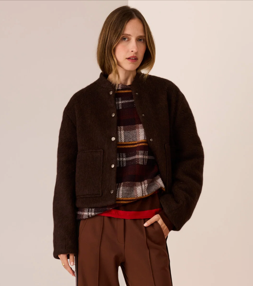 Made from a luxe wool blend coating, the Mirren Bomber lends and elevated edge to a classic casual silhouette.