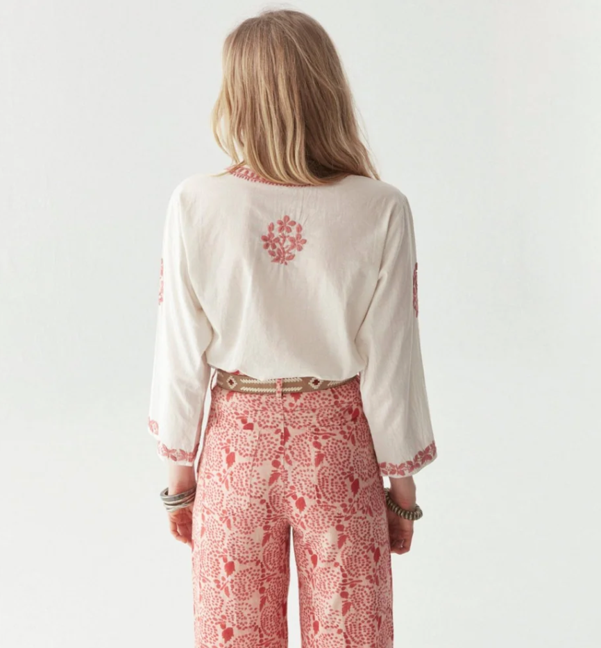 Soft, effortless, and stitched with stories—this is bohemian craftsmanship at its finest. An ode to heritage embroidery, the Shyla Blouse features intricate Chikan-inspired floral details on airy cotton, making every thread feel like a whisper from the past.