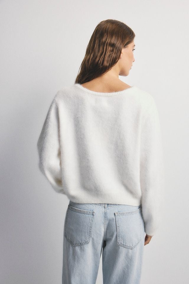 Our Stella knit is built for everyday style, the ultimate in comfortable luxury. In our signature super soft cashmere blend, this knit is perfect paired back with your high waisted skirt or jean and paired back with a heel for a night out.