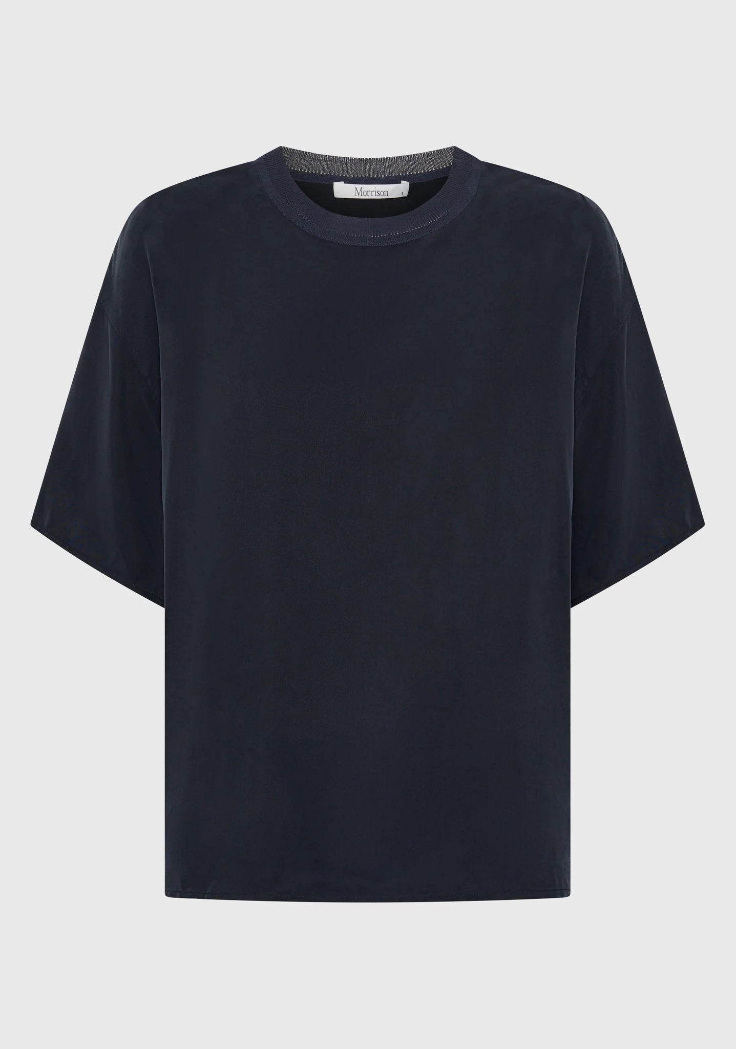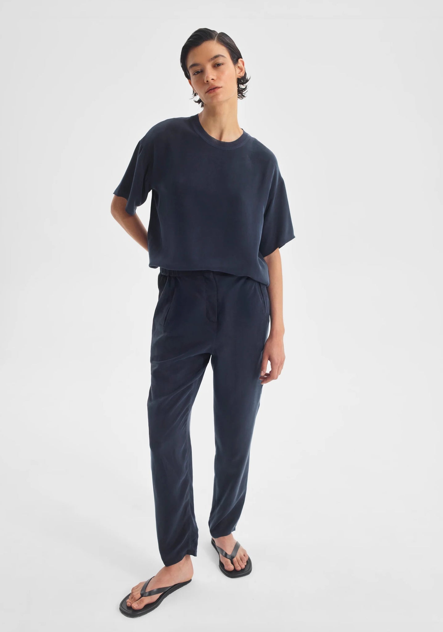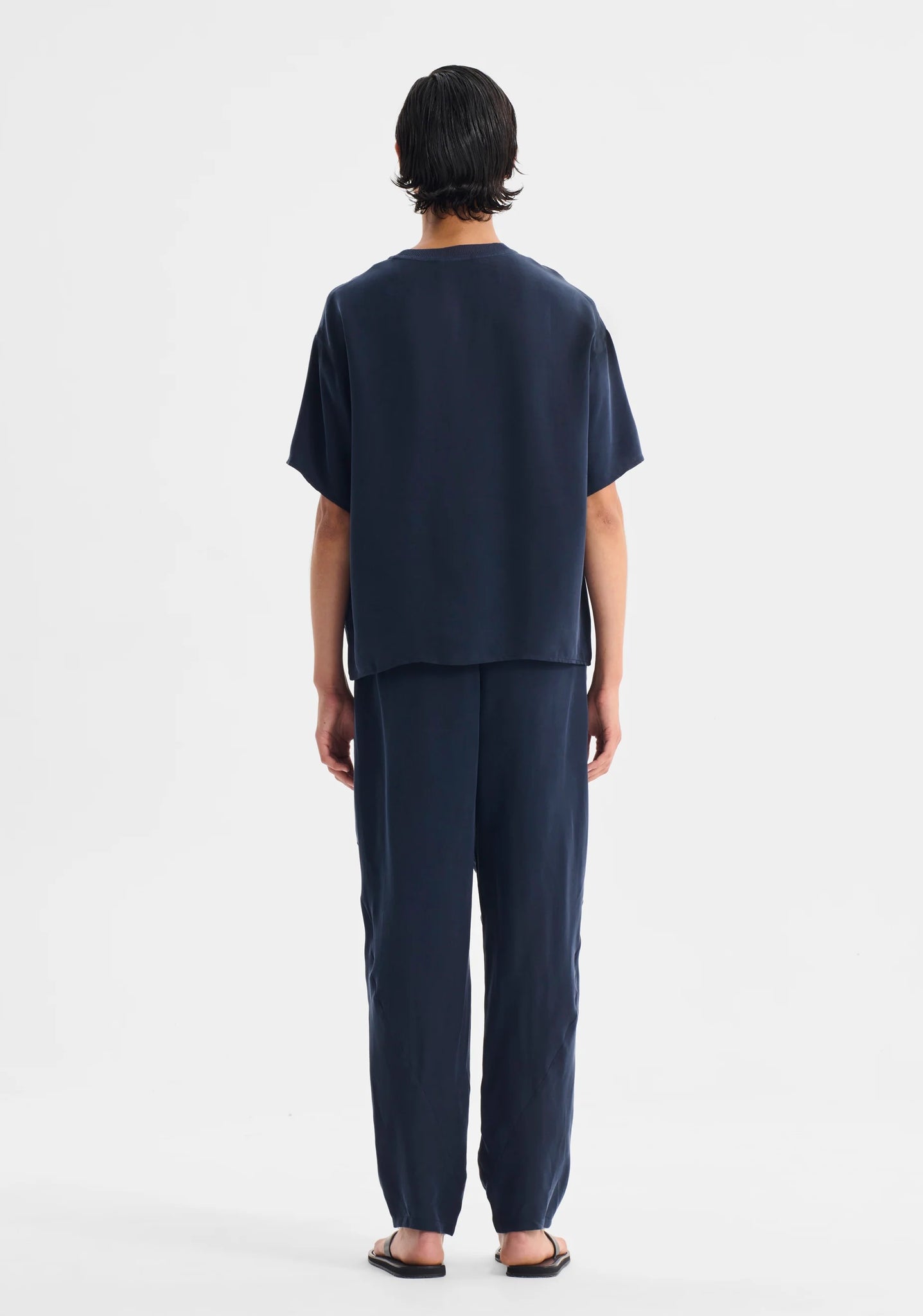 In a fluid cupro blend, the Zeke Top offers laid-back sophistication with its rib-knit crew neckline and gently dropped shoulders. Short sleeves and an easy, relaxed shape make it a versatile staple for effortless everyday styling.