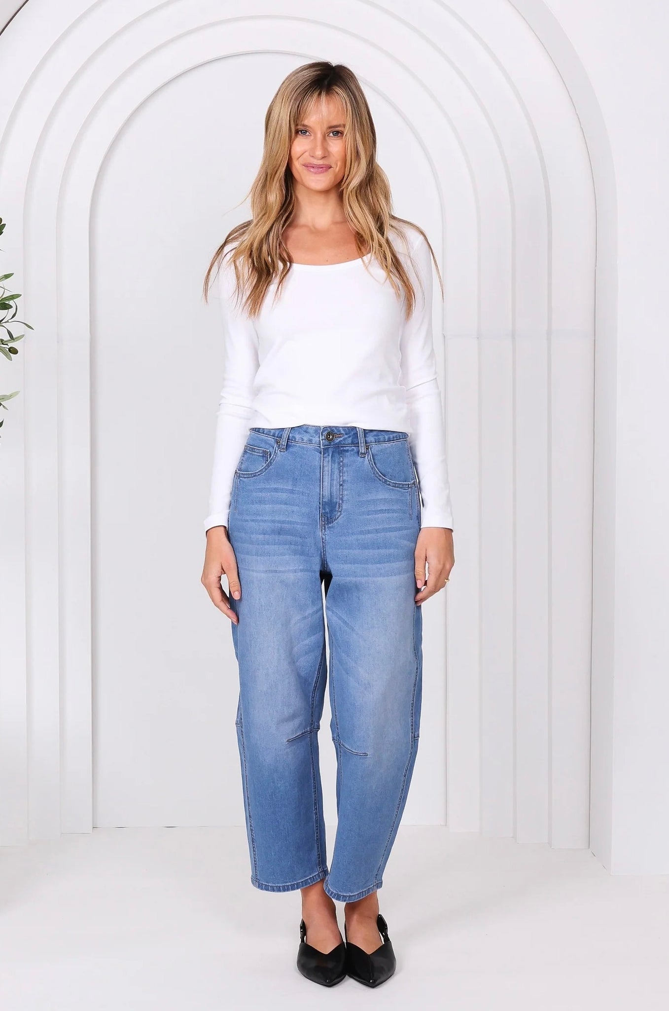 Meet the jeans you’ll want on repeat – the Toni Barrel Jeans in Light Wash by Monaco. Crafted from super soft stretch denim, these jeans are made for comfort, but still keep you looking polished. The relaxed barrel leg creates an easy shape that’s flattering through the hip and falls with a subtle taper to the ankle. Finished in a rich indigo wash with soft fading, they’re designed to move with you – perfect for days when you're out and about or long-haul flights where comfort is key. Add these to your winter wardrobe for style that works as hard as you do.