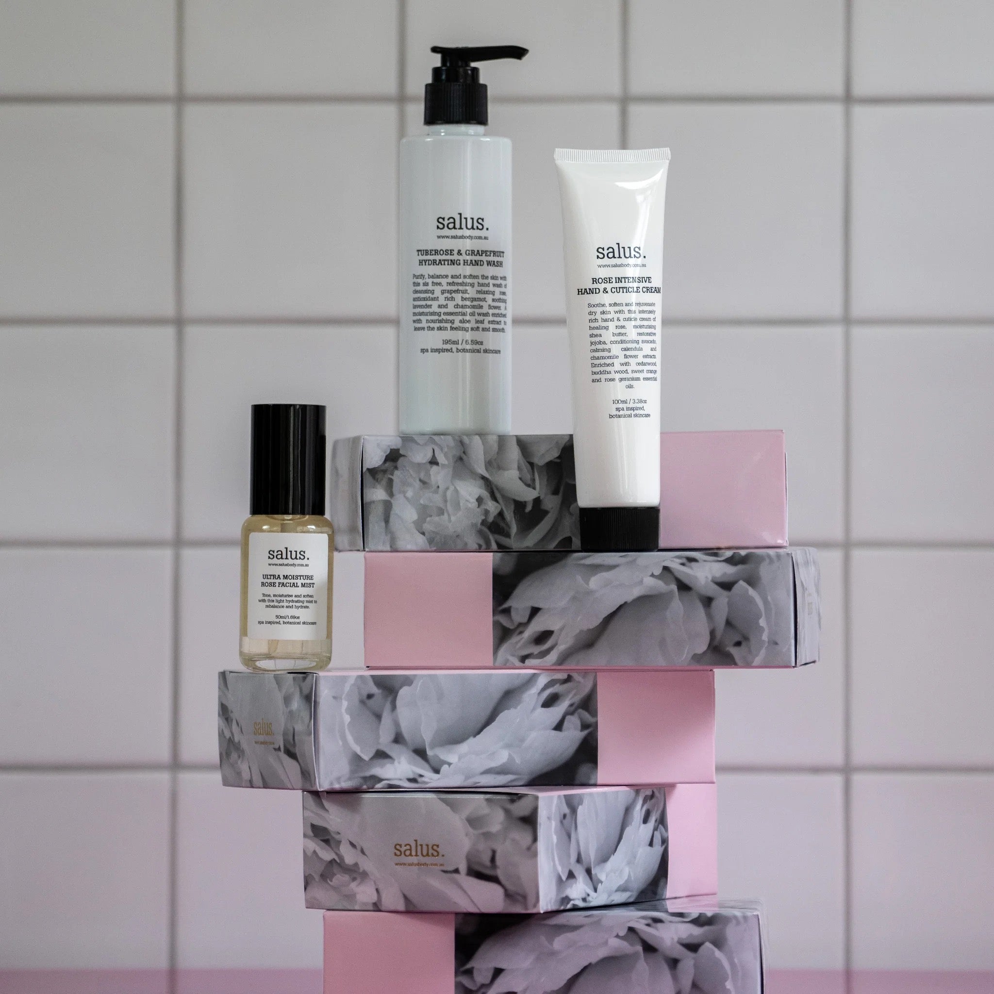 Tuberose & Grapefruit Hydrating Hand Wash 195ml / Rose Intensive Hand & Cuticle Cream 100ml / Ultra Moisture Rose Facial Mist