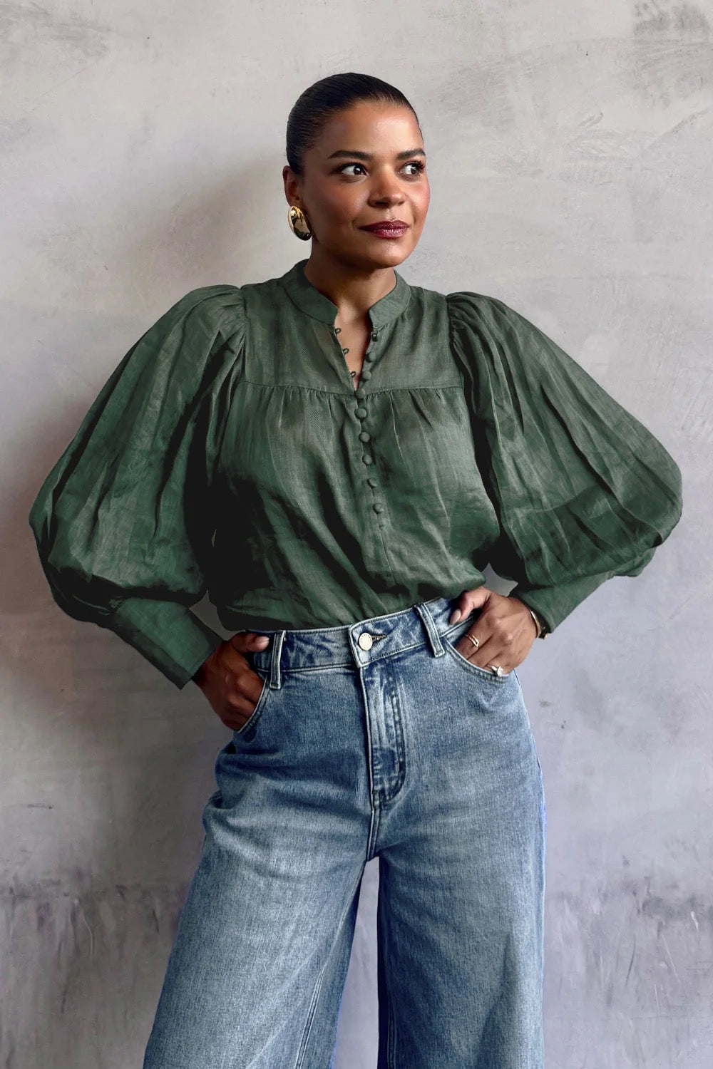 A refined transitional essential. the vista top balances softness and structure for effortless autumn–winter dressing.